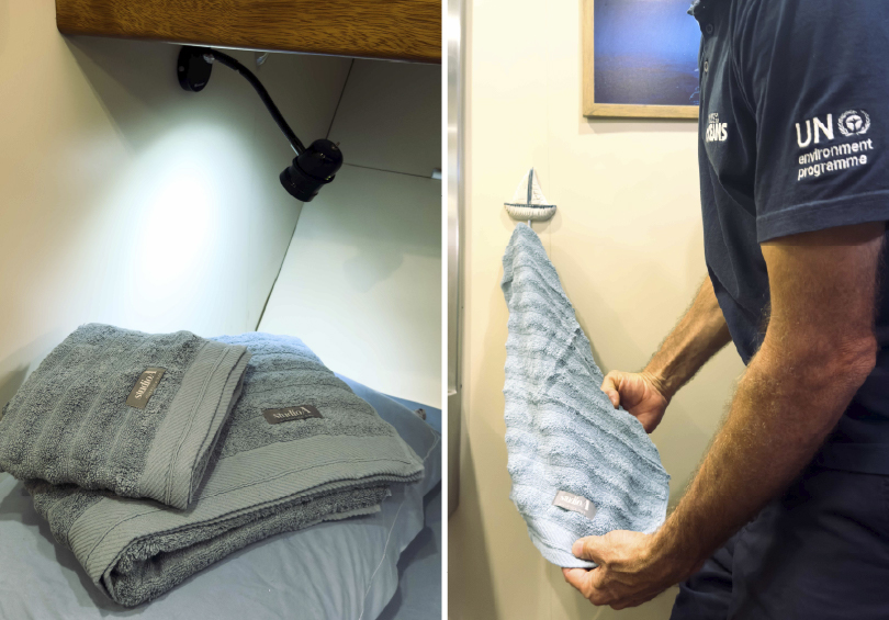Além da própria Família Schurmann e dos seus tripulantes, o Veleiro KAT também servirá de hospedagem para convidados especiais, que integram a programação. A Atlântica produziu uma Toalha de Praia personalizada, com elementos marinhos em relevo, para presentear esses convidados. O público também poderá visitar a embarcação, mediante agendamento prévio.