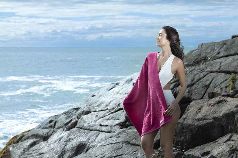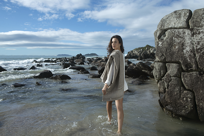 Essa é a minha primeira coleção de toalhas, e ela carrega muito do que acredito: a beleza no dia a dia, a força dos encontros verdadeiros e o valor do tempo presente. A natureza me ensinou isso. Ela vive em um ritmo próprio, tranquilo. Os pássaros não têm pressa. O mar encontra a areia no seu tempo. Tudo simplesmente é. Enquanto isso, a gente corre. Corre tanto que, às vezes, deixa passar o que realmente importa: um instante bonito, um toque gentil, um olhar atento.