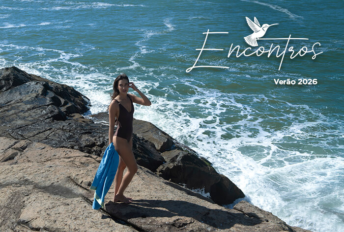Encontros acontecem o tempo todo. No toque, no olhar, na brisa que chega sem avisar. Só precisamos estar atentos, porque o presente está nos detalhes. E cada peça da coleção fala sobre essa presença tranquila: o encontro das marés com a areia, o som que embala e acalma, a delicadeza de um toque que permanece.